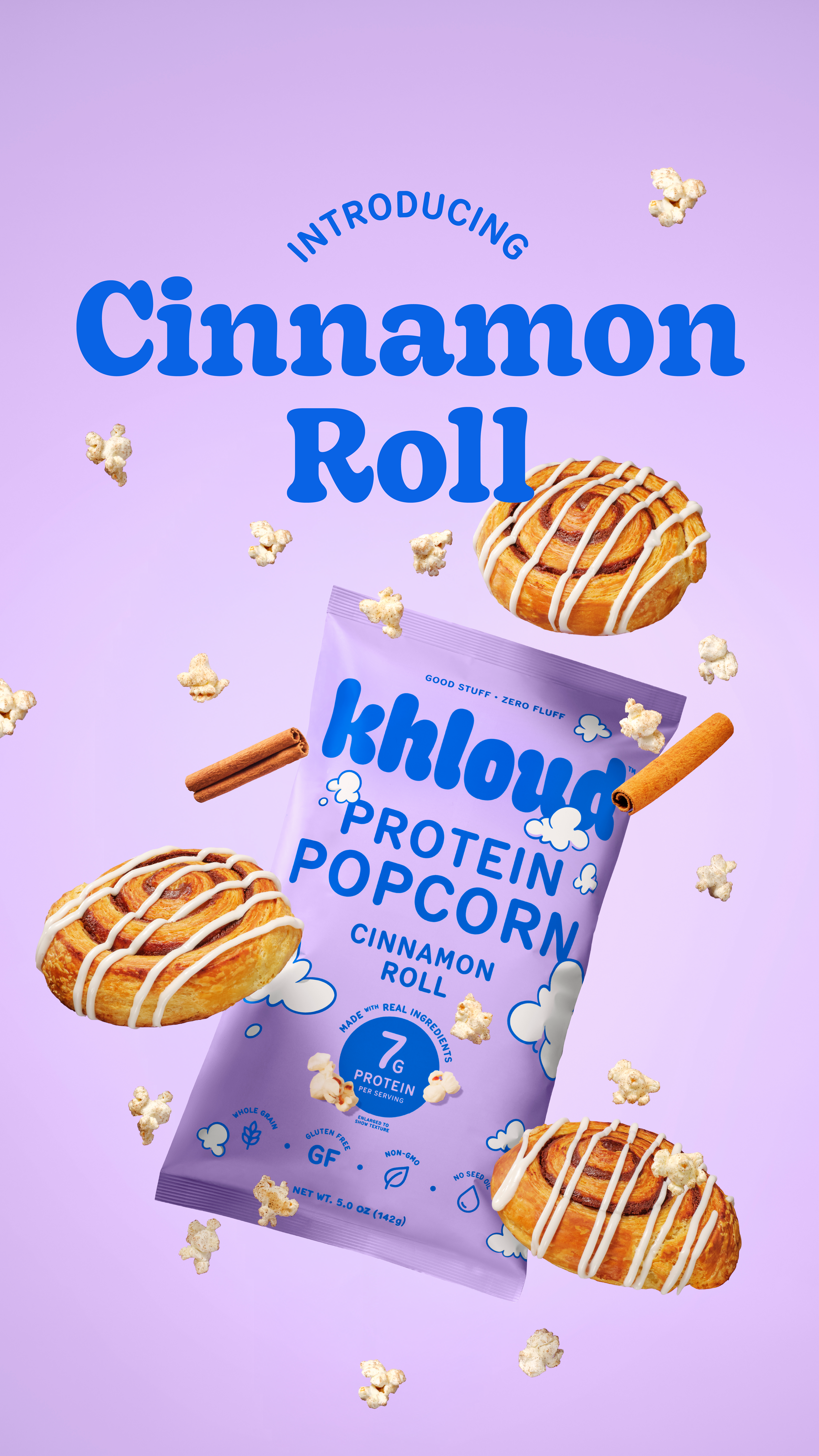 Campaign creative direction and 360 design experience across all channels including email, web design, and ads. Below is the digital campaign for the launch of Khloud's new flavor Cinnamon Roll, including social media and web-roll out.